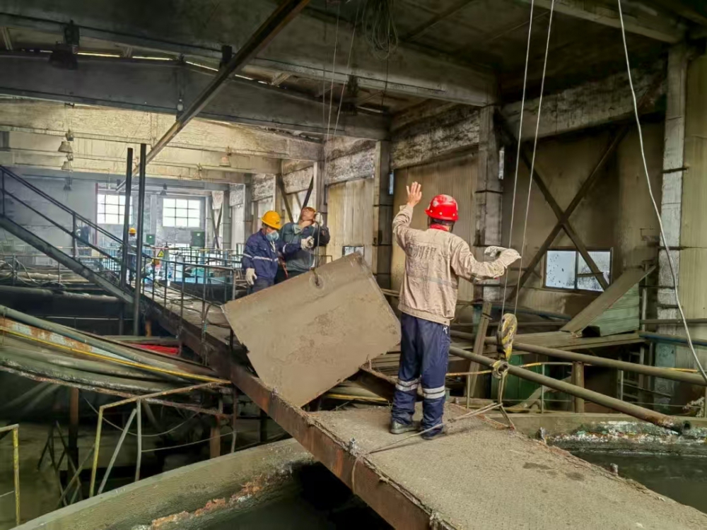 突出問題精準治理。一選廠已生產(chǎn)運行多年,濃密車間人行通道地板腐蝕嚴重,數(shù)次進行修修補補,存在較大安全隱患。為徹底解除隱患,公司利用停機間隙,籌集資金、人力、物資,對70米通道的地板、護欄、橫梁和支柱進行全面拆除更換,有效保障了作業(yè)區(qū)域安全;同時,為汲取內(nèi)蒙古“7.23”格柵板脫落事故的教訓,切實保障員工及參觀人員的生命安全,公司購買8000套固定卡扣,對兩個選廠磨浮車間格柵板進行加固處理,并在參觀通道設立了安全提示牌。